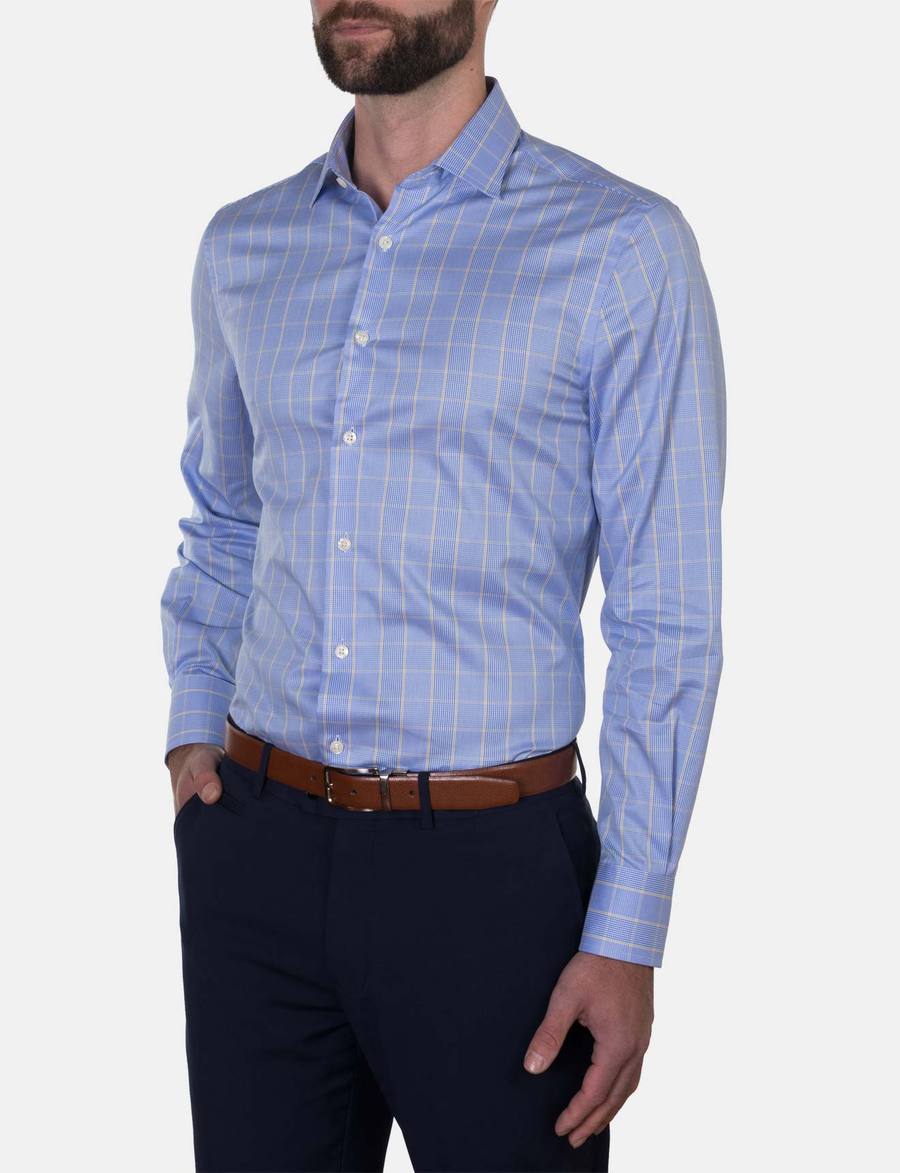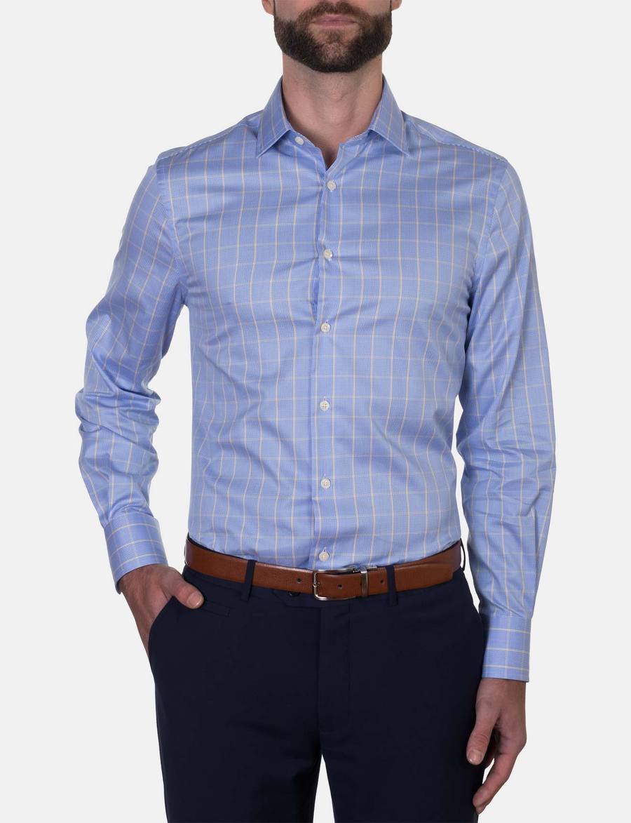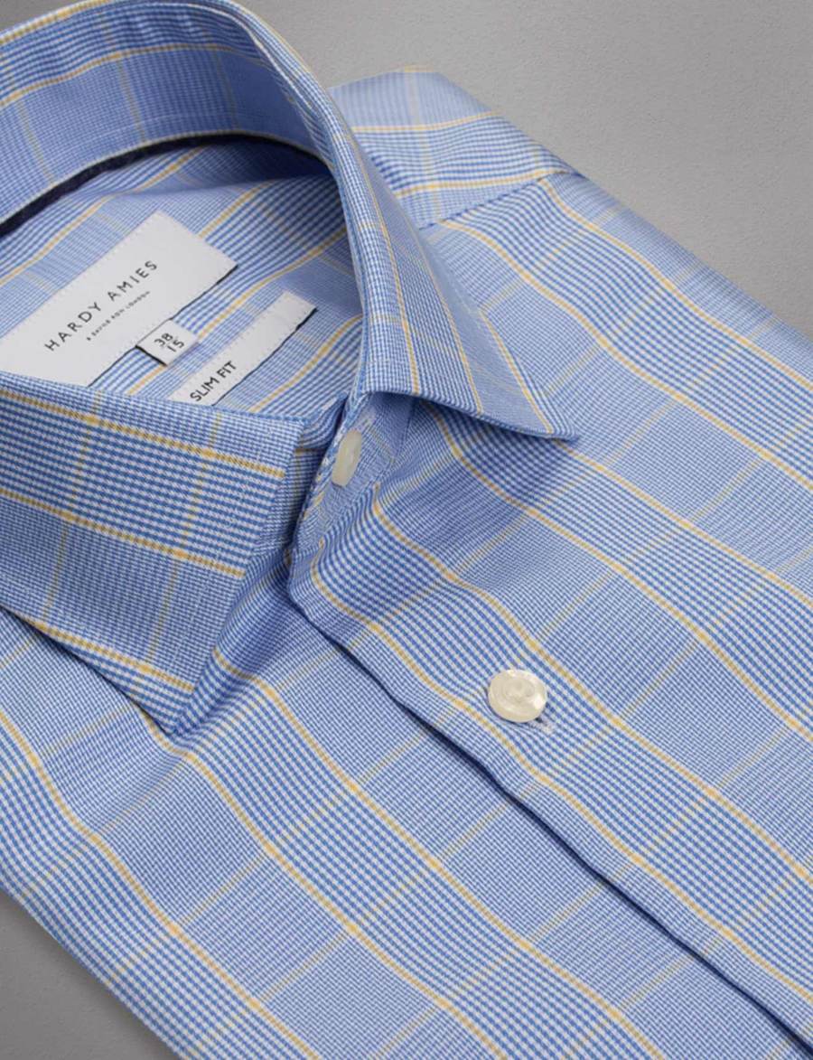 Hardy Amies Yellow Check Business Shirt (Slim Fit)